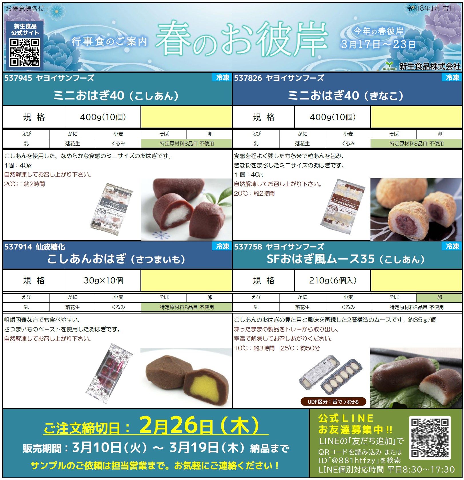 お彼岸の定番「おはぎ」を味や食形態でお選びいただけるように各種取り揃えました。